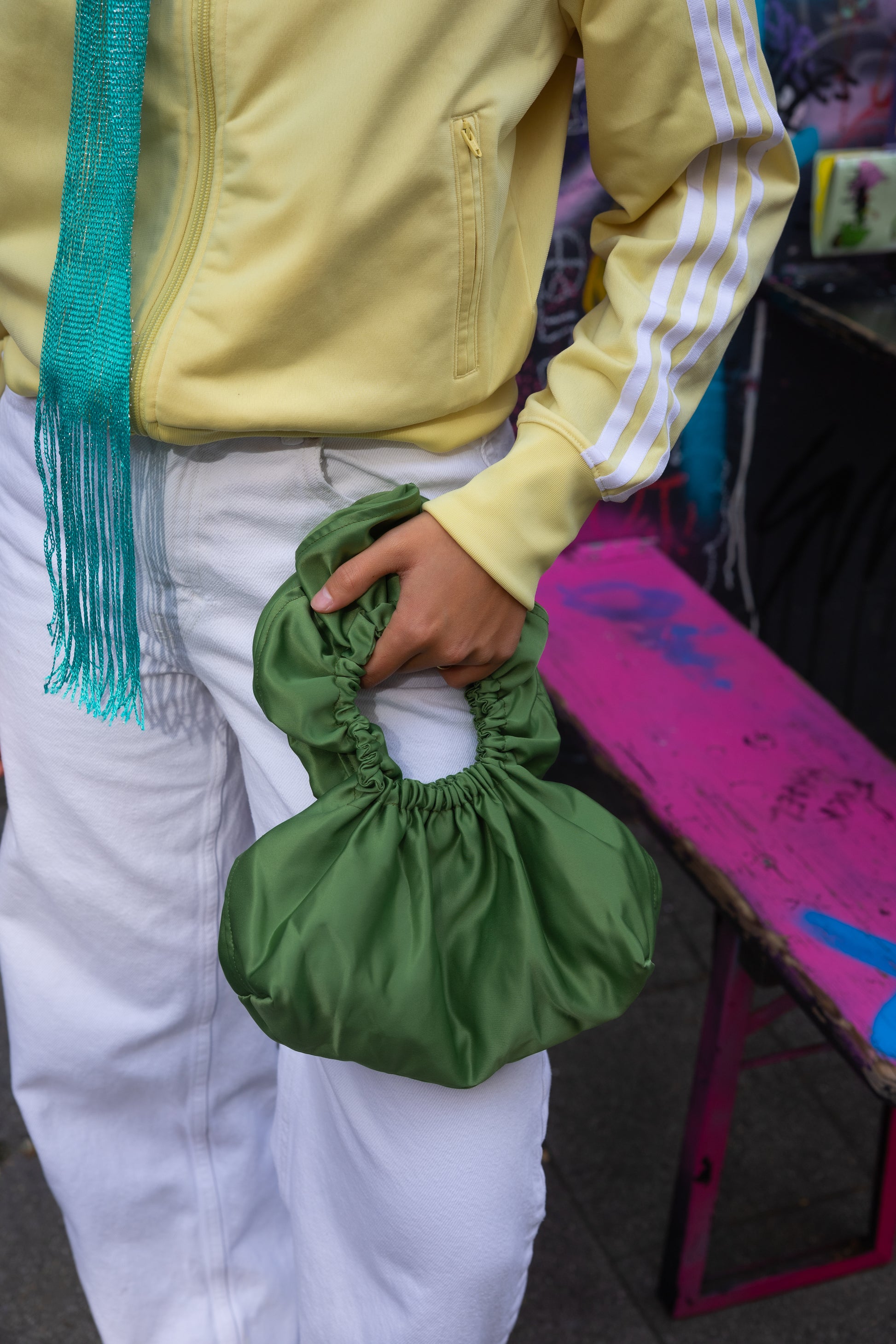 The Mini Bag is all about effortless glamour. With its vibrant satin finish and unique scrunch handle, it’s your perfect plus-one for dinner dates, nights out, or any event where you want to stand out. Small in size, big in impact.